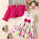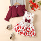 Sweet Girl's Long Sleeve Jacket Vest Butterfly Dress Autumn Winter Short Flower Skirt Two Piece Set Soft Polyester Knitted Fabric