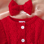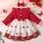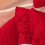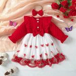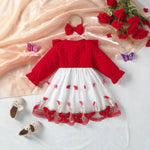 Sweet Girl's Two-Piece Outfit With Pinafore Fly Sleeve And 3D Flower Design Soft Polyester Knitted Long Sleeve For All Seasons