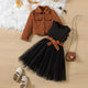Trendy Long Sleeve Dress Set Two-Piece Ensemble For Girls Winter Fashionable Outfit Soft Polyester Fabric Pure Color Design