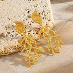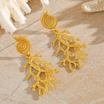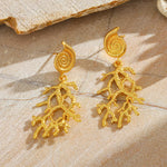 18K Gold Plated Copper Sea Snail Coral Earrings Elegant Cute Retro Hawaiian Style Beach Date Selfie Holiday Polished Finish
