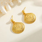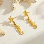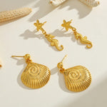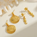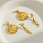 18K Gold Plated Stainless Steel Starfish Conch Horsehoe Pendant Earrings Women's Polished Finish Ear Jewelry Sea Theme