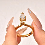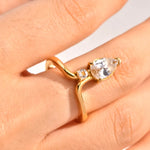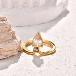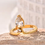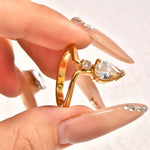 18K Gold Plated Waterdrop Shaped Diamond Ring Stylish Layering Design For Women Modern Elegant Jewelry Accessory For All Seasons