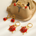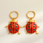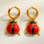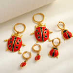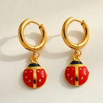 Charming 18K Gold Plated Stainless Steel Ladybug Pendant Earrings Cute Fashionable Casual Romantic Commuting Style Ear Jewelry