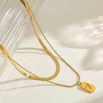 Double Layer Geometric Number Pendant Necklace Stainless Steel Vacuum Plated 18K Gold Casual Elegant Simple Design Lobster Clasp