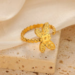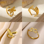 Elegant Butterfly Open Ring Stainless Steel Plated 18K Gold Surface Geometric Pattern Women's Personality Jewelry Accessories