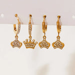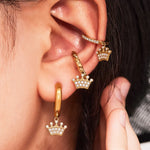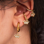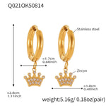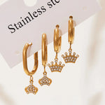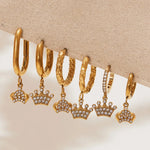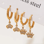 Elegant Luxury Geometric Crown Embedded Zirconia Dangle Earrings Stainless Steel 18K Gold Plated Tassel Ear Jewelry