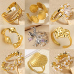 Elegant Shell Butterfly Zirconia Embedded Ring Gold Plated 18K Wide Face Ladies Ring Festive Birthday Gift Jewelry Accessory