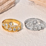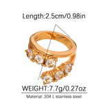Pattern: Irregular Plating Material: 18K Real Gold Plated Gold Plating Process: PVD Coated Inlay Material: Zircon Quantity: 1 Piece Occasion: Weekend,Travel,Selfie,Festival Material: 304 Stainless Steel Classification: Rings Style: Elegant,Glam,Exaggerated,Luxurious Season: All Seasons Craft: Waterproof Non...