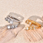 Elegant Three-Row Titanium Steel Ring With Embedded Zirconia Stones Gold Plated Simple French Style Personality Jewelry Accessory