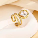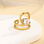Pattern: Solid Color Plating Material: 14K Gold Plated Inlay Material: Zircon Craft: Inlay Quantity: 1 Piece Occasion: Weekend,Lawn Material: 304 Stainless Steel Classification: Open Rings Style: Modern Style,Sweet Season: Summer Gender: Women's Weight: 6g