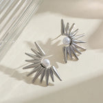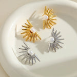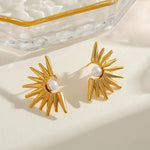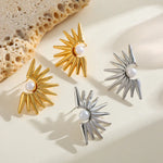 Geometric Pearl Embedded Stainless Steel 16K Gold Plated Earrings Fashionable Casual Elegant Cute Polished Finish For Women