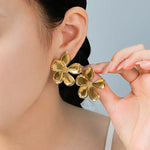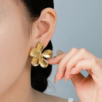 Gold Plated Stainless Steel Flower Earrings Elegant Casual Simple Style For Date Daily Leisure Occasions Women's Polished Finish