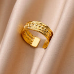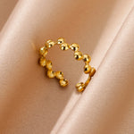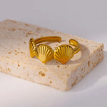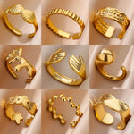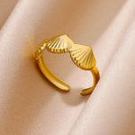 Gold Plated Stainless Steel Open Hand Shell Ring Geometric Ball Multi Pattern Daily Versatile Commuting Accessory Unisex