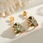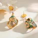 Natural Seashell Pearl Embedded Stainless Steel 18K Gold Plated Pendant Earrings Elegant Casual Fashion Jewelry For Women