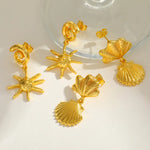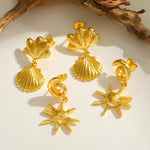 Ocean Series Copper Plated 18K Gold Starfish Shell Pendant Earrings Elegant Simple Artistic Women's Jewelry Sun and Beach Theme