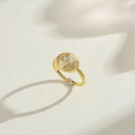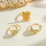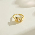 Open Geometric Ring With Embedded Zircon Copper Plated 14K Gold Women's Fashion Jewelry Accessory For Casual And Date Wear