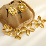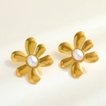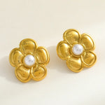 Romantic Artistic Pearl Embedded Gold Plated Silver Tea Rose Earrings Fashionable Elegant Casual Classic Style Women Jewelry