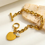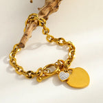 Romantic Clear Stainless Steel 18K Gold Plated Zircon Heart Pendant Bracelet Casual Classic Style For Outdoor Daily Shopping