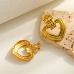 Romantic Elegant Daily 18K Gold Plated Stainless Steel Heart Shaped Earrings Women's Fashion Jewelry Casual Chic Classic Design