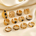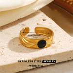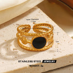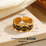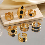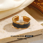Stainless Steel 18K Gold Plated Black Drip Oil Round Ring Fashionable Popular Jewelry Accessory For Casual Weekend Daily Date Holiday