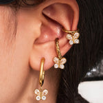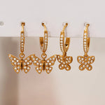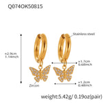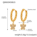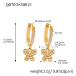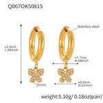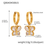Stainless Steel Butterfly Full Drill Zircon Earrings Plated 18K Real Gold Fashion Versatile U-Shaped Floral Pattern Polished Ear Studs Jewelry Combination