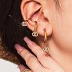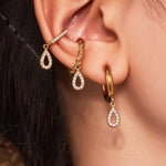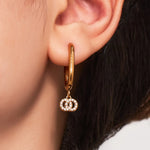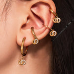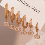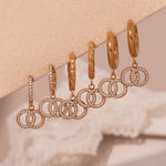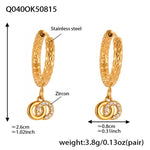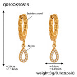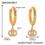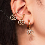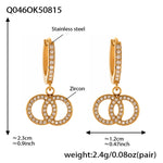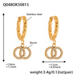 Stainless Steel Double Ring Full Drill Zircon Earrings 18K Gold Plated Geometric Waterdrop Versatile U-Shaped Floral Pattern Jewelry Earrings