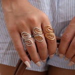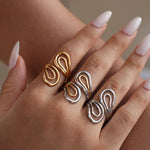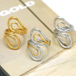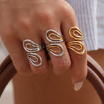 Summer Ladies Open Stainless Steel Hollow Circle Ring 18K Gold Plated Adjustable Geometric Pattern Rings Casual Minimalist Style