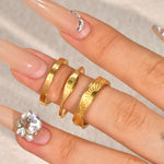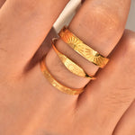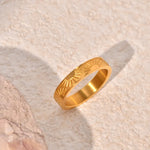 Sunshine Pattern Titanium Steel Ring Plated 18K Gold Women's Ring Elegant Retro Countryside Style For Weekend Travel Selfie Festival