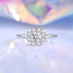 925 Sterling Silver Moissanite Zircon Flower Open Rings Rings