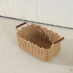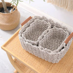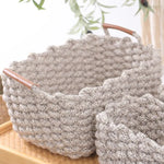 Handcrafted Cotton Rope Storage Basket With Handle For Lipstick And Eyeshadow Compact Organizer Cartoon Pattern Simple Style