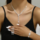 Elegant Minimalist Geometric Diamond Necklace Earring Set Bridal Gown Jewelry Accessories Star Moon Cloud Universe Design