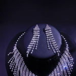 Exaggerated Full Drill Earring Necklace Set Tassel Clasp Chain Welding Jewelry For Women Simple Style