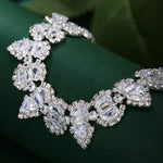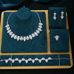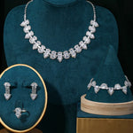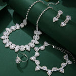 Fashionable Sparkling Full Diamond Jewelry Set Claw Chain Necklace Synthetic Zirconia Elegant Love/Waterdrop/Bell Design Alloy