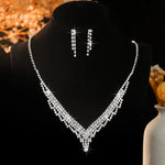 Jinxi Jewelry Bridal Dress Necklace Earring Set Simple Full Diamond Super Shiny Water Diamond Necklace Jewelry Accessories