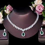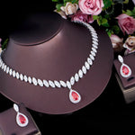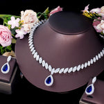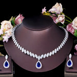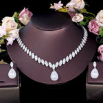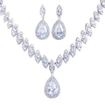 luxurious bridal shiny water droplets copper plating inlay artificial gemstones white gold plated rhodium plated jewelry set