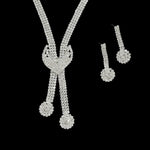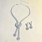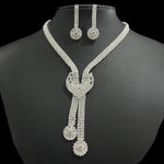 Shiny Bride Jewelry Set New Full Diamond V-neck Necklace Earrings 2-piece Set Accessories Floral Pattern