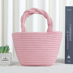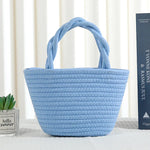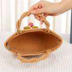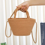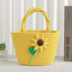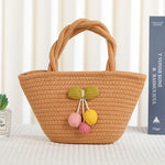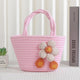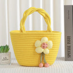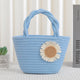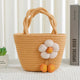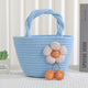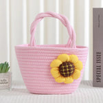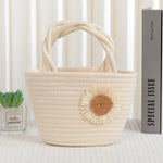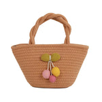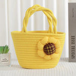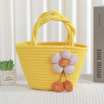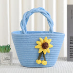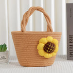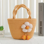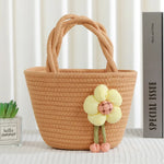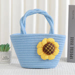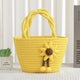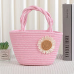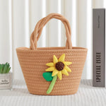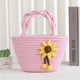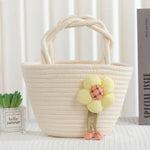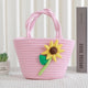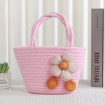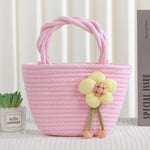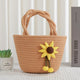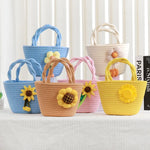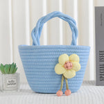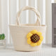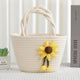 Cute Little Girl's Straw Woven Crossbody Bag Travel Mobile Phone Handbag Summer Cotton Material Floral Elements Country Style