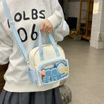 Cute Small Double Shoulder Bag Multi-Functional Anime Style Bikkuri Pain Snack Quantity Female Backpack Nylon Material Zipper Closure
