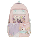 Dopamine Large Capacity Backpack For Junior High School Girls Nylon Material Zipper Closure Fresh Sweet Style Wear Resistant