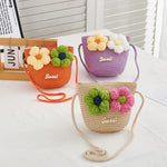 New Style Spring Summer Flower Grass Woven Small Crossbody Bag Children's Outdoor Travel Coin Purse Mobile Phone Bag