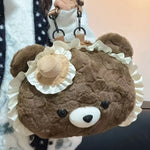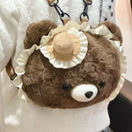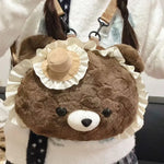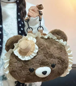 Super cute New cute cartoon brown love bear doll plush backpack western style girl commuter jk backpack