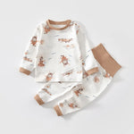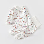 Pure Cotton Baby Sleepwear Set High Waist Belly Protector Long Sleeve Unisex Kids Home Clothes Comfortable Breathable Kids Suit