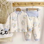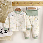 Thickened Cotton Fleece Children's Thermal Underwear Set High Waist Baby Clothes Warm Sleepwear Pure Cotton Padded Jumpsuit