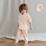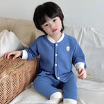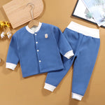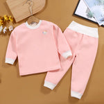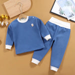 Thickened Fleece Children's Thermal Underwear Set Baby Sleepwear Spring Autumn Winter Unisex Warm Clothes Soft Round Neck Pure Color