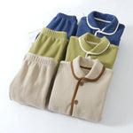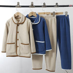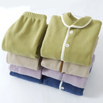 Thickened Fleece Pajamas Set For Kids Warm Home Clothes Pure Color Boys Girls Sleepwear Autumn Winter New Style New Version