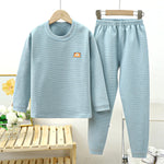 Thickened Winter Thermal Underwear Set For Kids Warm Home Clothes Pyjamas Unisex Round Neck Sweat Absorbent Quick Heating Dervo