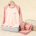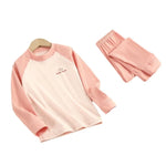 Warm Fleece Children's Underwear Set Velboa Girls Boys Big Kids Autumn Winter Thermal Clothing Round Neck Pure Color Polyester