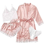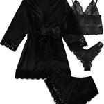 Elegant Style Women's Sleepwear Set 4-Piece Lace Satin Temptation Nightgown Robe Home Comfortable Spring