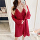 French Cross Back Strap Chest Pad Chemise Sexy Two-Piece Set Sleepwear Women Embroidered Silk Satin Robe Luxury Noble Home Comfort