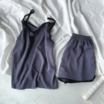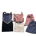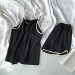 Spring Summer Women's Loose V-neck Satin Strap Set Color Block Comfortable Home Clothes Sleepwear With Chest Pad Sexy Style